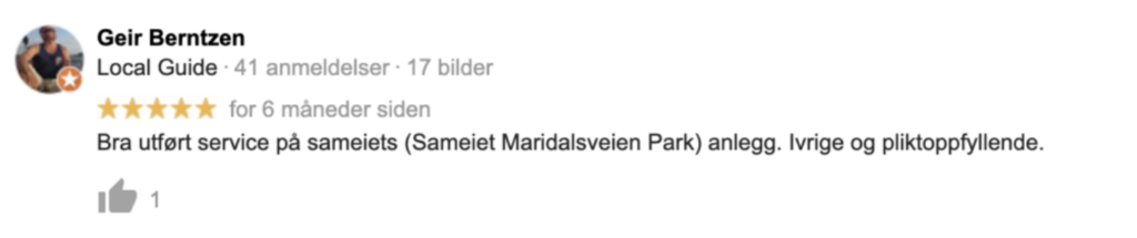Dialogen i forkant, gjennomføringen og oppfølgingen i etterkant har vært helt forbilledlig. Personellet møtte opp presis, utførte arbeidet godt innenfor estimert tid og ga oss gode anbefalinger. Det er også verdt å påpeke at folka som utførte oppdraget har en klar yrkesstoltet til jobben de gjør, noe som tydelig gjenspeiles i kvaliteten på leveransen.